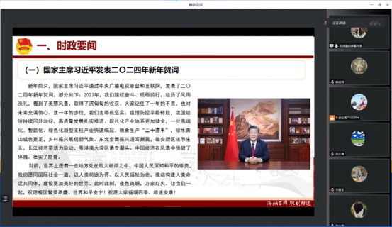 研究生会功能型团支部组织团员共同收看了2月4日召开的学习贯彻习近平新时代中国特色社会主义思想主题教育总结会议,学习了广东援鄂医疗队护士朱海秀、罕见病“庞贝病”患者王唯佳和“00后”抗洪战士等三位2023十大青年代表人物的先进事迹。研究生会副主席于君指出,支部团员要不断提高对党的创新理论的领悟力,争做有理想、敢担当、能吃苦、肯奋斗的新时代好青年。