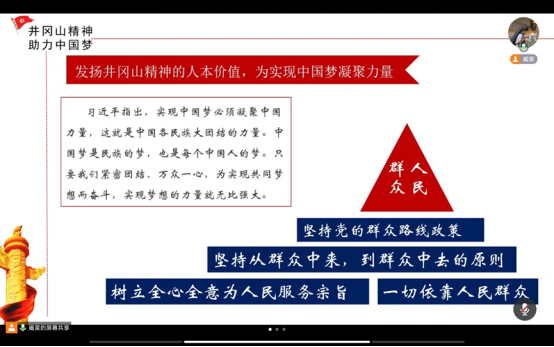 2023级团支部持续开展“传承红色基因,赓续共产党人精神血脉”支部品牌特色活动。组织委员阚昊分析了井冈山精神的由来,从三个方面深刻剖析了井冈山精神的内涵,他指出坚定信念、艰苦奋斗,是井冈山精神的灵魂;实事求是、敢闯新路,是井冈山精神的核心;依靠群众、勇于胜利,是井冈山精神的基石。他强调,井冈山精神是我们宝贵的精神财富,发扬井冈山精神,坚信共产主义远大理想,坚信中国革命必将胜利,不怕困难,咬紧牙关,是我们取得中国梦伟大胜利的精神支柱。