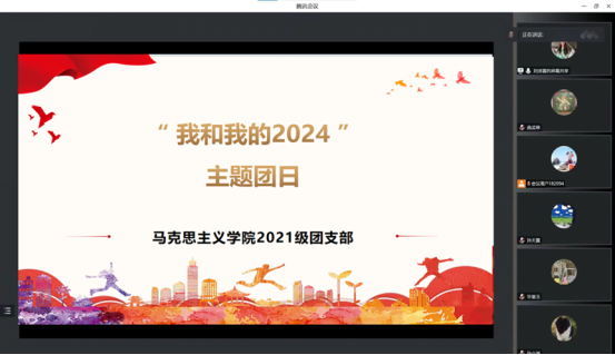 为深入学习领会习近平总书记2024年新年贺词精神,引导团支部成员开展职业探索和社会实践活动,激励青年把光荣和梦想书写在强国建设、民族复兴伟业的新征程上,马克思主义学院各团支部1-2月围绕“我和我的2024”等内容开展主题团日、主题班会活动。