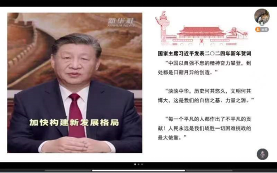 学院各团支部集中学习了习近平总书记2024年新年贺词。2021级团支部书记刘译蔓指出,我们走过不平凡的2023年,迎来充满希望的2024年。习近平主席的新年贺词温暖人心、催人奋进,激励亿万人民把光荣和梦想书写在强国建设、民族复兴伟业的新征程上。2022级团支部书记于娜带领团支部成员学习了国家主席习近平发表的二〇二四年新年贺词以及习近平总书记给武汉大学参加中国南北极科学考察队师生代表的回信,鼓舞团员们接续砥砺奋斗,练就过硬本领,勇攀科学高峰,为实现高水平科技自立自强和建设教育强国、科技强国、人才强国,全面推进中国式现代化作出新的更大贡献。2023级团支部组织委员阚昊选取新年贺词中的金句进行分享和讲解,并邀请团员进行交流分享。