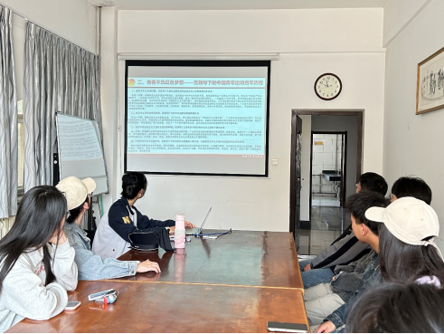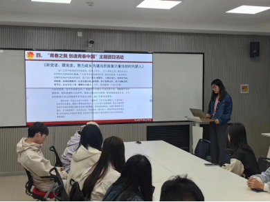 2022级团支部书记于娜组织支部团员共同学习了习近平总书记关于青年工作的重要论述,深入学习习近平总书记在指导青年工作中所贯彻的“一个主题”“一个重点”“一条道路”,帮助团员更好地把握新时代青年工作的主题。此外,结合学院青年马克思主义者宣讲团的宣讲内容,分四个历史时期,引导团员和青年了解党领导下的中国青年运动百年历史,并引导大家就支部阅读角的《习近平新时代中国特色社会主义思想专题摘编》一书,结合自己的学习和工作经历,思考并分享自己对“以人民为中心”这一理论内涵的理解,围绕“如何做一名有担当的新时代青年”开展深入探讨。