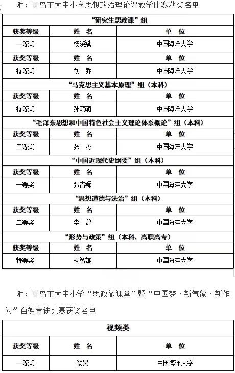 马克思主义学院师生在首届青岛市大中小学思想政治理论课教学比赛及“思政微课堂”宣讲比赛中斩获佳绩