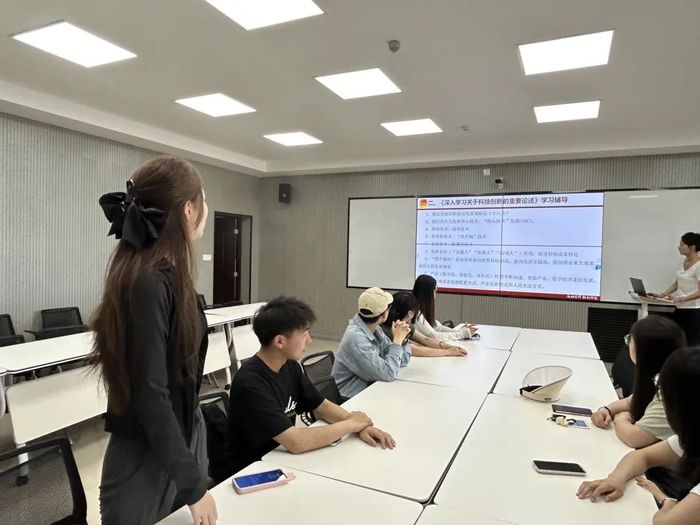 2023级团支部组织委员阚昊带领全体团员开展了“科技创新——争当科创主力军”主题团日活动。阚昊对习近平总书记论科技创新的重要讲话内容进行了深入解读,团员代表孙晓琪就“新的时代背景下,企业如何增强自主创新能力,在推动科技强国建设、实现高水平科技自立自强中争当主力军?”这一问题发表了自己的见解,她认为科研工作者应当保持理论知识的更新频率,充分利用高校提供的持续学习的机会,将理论学习和实践应用相结合,助力科技创新更好地应用到经济增长中。通过这一环节,团员们不仅加深了科技创新对于国家发展重要性的认识,也坚定了在学术研究和论文写作中不断创新的信念。