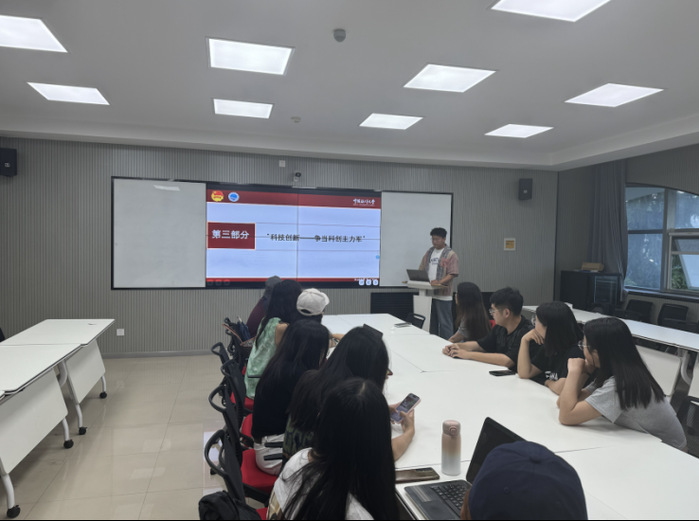 习研会功能型团支部由团员代表郑昱潇领学习近平总书记关于科技创新的重要论述,深入阐述了新质生产力的内涵,使成员深刻理解到科技创新的重要作用。她认为,面对现代化建设的迫切需求和严峻复杂的外部环境,我们必须充分认识科技自立自强对国家发展和安全稳定的重大意义。