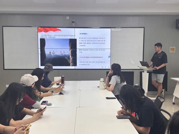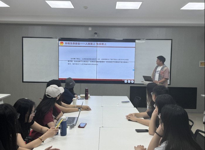 研究生会功能型团支部开展“珍视生命安全——人民至上 生命至上”主题团日活动。团员代表张庆友从第23个全国“安全生产月”的现实背景出发,带领团支部成员深入学习习近平总书记近十年关于安全生产的重要论述,加深了全体团员对于安全生产责任的认识。研究生会副主席于君认为,同学们要在日常生活中加强人身安全、校园安全、心理安全、网络安全等方面知识的学习,提高防范各种安全事故的能力,真正做到防患于未然。