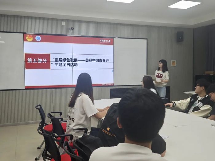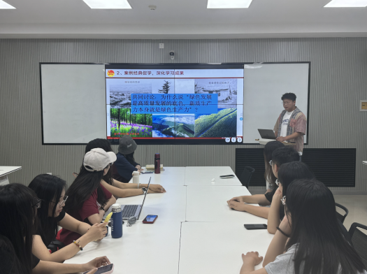 2023级团支部书记张聪带领全体团员开展“倡导绿色发展——美丽中国青春行”主题团日活动。张聪详细介绍了习近平总书记关于生态文明建设的重要论述,她认为,生态安全与人民群众的生存和健康息息相关,与经济发展和社会稳定密切相关。习近平总书记高度重视生态安全,强调“筑牢国家生态安全屏障”“确保绿水青山常在、各类自然生态系统安全稳定”“要守牢美丽中国建设安全底线”。随后,与会团员共同观看生态环境部发布的2024年“全国低碳日”主题宣传片。在青年大讨论环节,团员代表朱亦婷认为,作为新时代的研究生,应积极响应国家号召,将绿色发展理念融入学习和生活的各个方面,从点滴小事做起,维护好校园环境。通过本次活动,团员们进一步认识到生态文明建设的重要性,坚定在日常生活中积极践行绿色理念,投身于国家绿色发展事业中去的坚定信念。