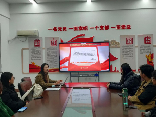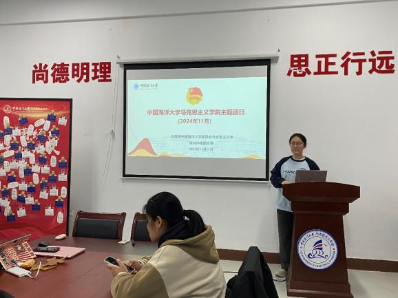 研究生会功能型团支部与2023级团支部联合举办了本次主题团日活动,团支部书记张聪结合习近平总书记在全国教育大会上的重要讲话精神,进一步阐释习近平总书记重要回信精神的深刻内涵。随后,团支部组织观看了《以工兴海谱华章——文圣常先生纪录片》,团员代表尚明治以“大院士、大魄力、大情怀”为脉络讲述了文圣常先生的事迹,并分享了自己参演学校首部原创大师剧《文圣常》的经历。青年马克思主义者宣讲团负责人周睿思分享了学习习近平总书记重要回信精神师生宣讲团近期在各院系及学生组织中开展宣讲的总体情况和个人体会,师生宣讲团共选拔了5名学院团员青年,充分发挥专业学科优势,用“青言青语”讲好、阐释好习近平总书记的重要回信精神。本次主题团日活动还邀请到学院党委书记任玮娜和学院党委副书记、副院长王付欣,引导与会团员进一步从习近平总书记的重要回信精神中汲取思想伟力,激发奋进动力,勇担青春使命。