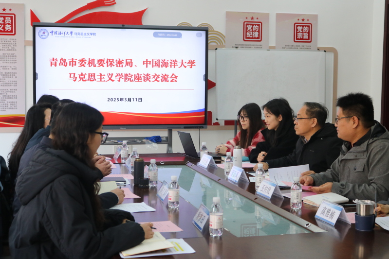 3月11日,青岛市委机要保密局、开云电竞网址马克思主义学院座谈交流会在学院B214会议室举行。青岛市委机要保密局副局长岳立成,宣传教育处处长陈立军,一级主任科员李雅楠,工作人员矫梦田、杨贞以及马克思主义学院院长蔡勤禹,党委副书记、副院长王付欣,团委书记高雅楠,辅导员刘珂曼参加会议,会议由王付欣主持。