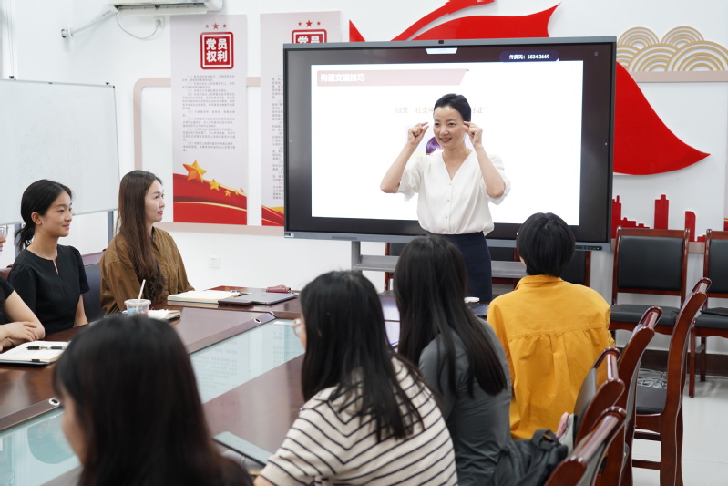 张文艳老师从面试准备要点、形象塑造、行为规范及应答礼仪四个方面剖析面试的礼仪技巧。她指出,在求职竞争中,面试礼仪是个人素养与职业形象的直观体现。在面试准备上,要做到“两个提前”。在形象塑造上,要遵循“三色原则”和“三一定律”。在举止行为规范上,具体演练了肢体语言、离场等细节,充分展现应试者的礼貌与专业。在应答礼仪上,要做好情绪管理,沉着应对。