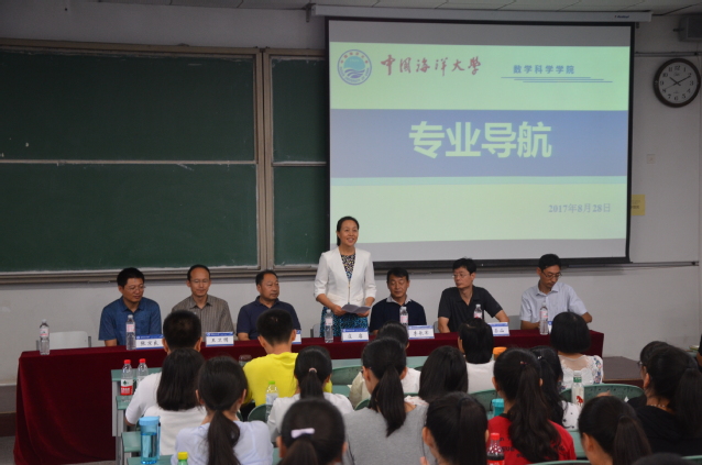 2017年8月28日,数学科学学院2017级新生专业导航教育于教学区7101举行。出席本次活动的领导有:数学科学学院党委书记庄岩、数学科学学院院长谢树森、院长曹圣山、院长王卫国、副院长李长军、信息与计算科学系主任张京良,以及数学科学学院团委的各位老师。