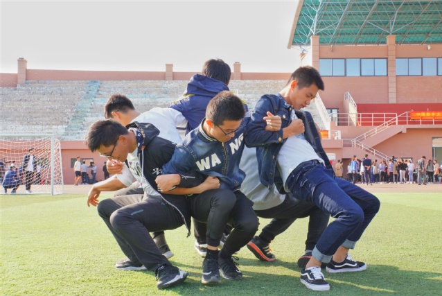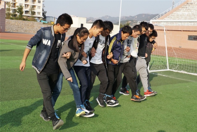 背对背起立很考验团队精神的一个项目同一队伍的同学胳膊挽在一起坐下,最快站起的队伍获胜如果有同学稍不同步就功亏一篑有的组颇为聪明,喊着口号一齐用力。挑战成功的队伍全体击掌庆贺,喜悦之情溢于言表。