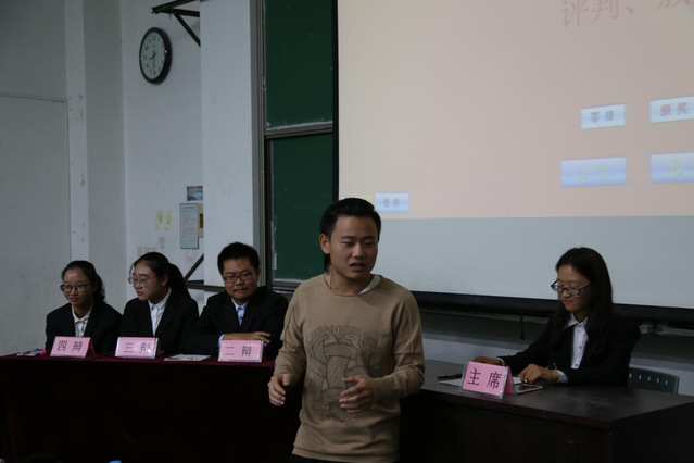 最后,我院14级辩论队领队韩麟针对双方表现,点出辩题对于反方的不利性,并勉励反方在该辩题下应有的表现。