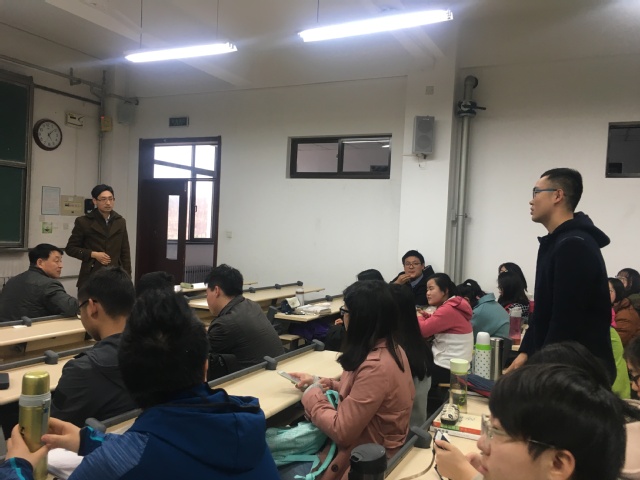 随后,李长军再次强调了基础课程的重要性,他指出:作为数学学院的学生,不要盲目跟风,最重要的是把数学基础课程学好,在大学期间使自己的思维得到锻炼与提高。在选课的时候不要模棱两可,选择了一个模块就要坚持下去。王卫国给同学们介绍了自己的研究方向,加深了大家对专业的理解。