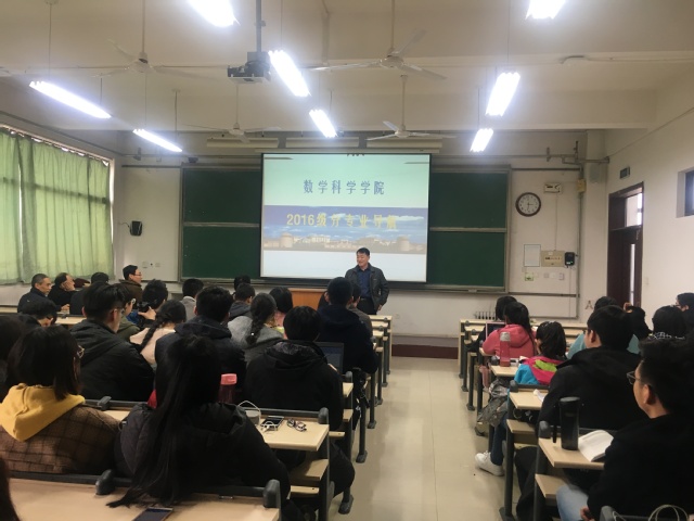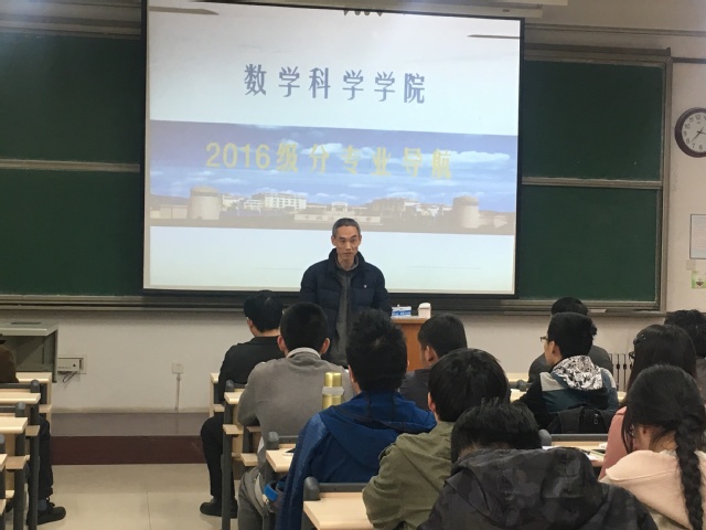 2018年3月22日下午,数学科学学院于教学区3410教室开展了“2016级分专业导航”讲座,出席本次活动的嘉宾有数学科学学院院长谢树森,副院长李长军、王卫国,信息与计算科学系主任张京良,数学系主任岳跃利,本次活动由数学科学学院党委副书记刘中华主持。本次讲座为2016级同学详细地介绍了各个专业的教学要求以及发展前景,旨在让同学们对专业有更多的了解,在即将分专业之际作出更适合自己的选择。