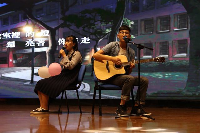 第三篇章:归来仍少年。来自14级数学与应用数学专业的同学们为我们倾情奉上了合唱《爱如海大》。“也许有一天,你会从这里走远。去体会世界冷暖,去把世界改变……”歌声中唱出了不舍,也唱出了豪情满怀。我们相信,你们定会不负初心,在日后的路上勇往直前。之后是由17级数学类三班带来的小品《兄弟》。兄弟是谁?兄弟就是那个整天泼你冷水却又在危急时刻能够助你一臂之力的人。三班的同学用他们精湛的演技诠释了兄弟情,无论是斗嘴还是争吵,都让人身临其境。场下观众笑声不断。当大屏幕上的字字句句一条条的出现又消失,节目临近尾声,可每个人的嘴角也许都因为想起那么一个人、或是一群人而会心一笑。第三部分的最后,也是整场晚会的最后一个节目是由17级数学类2班范梦珂、王婉婷同学带来的歌曲《你曾是少年》。“相信爱会永恒,相信每个陌生人。当我和世界初相见,当我曾经是少年。”婉转的歌喉引领着晚会圆满结束。