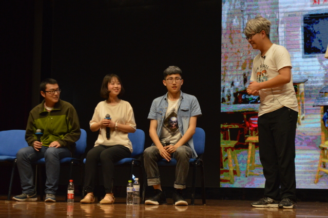 首先,是由大艺团的同学们带来的阿卡贝拉——《cheap thrills》,他们用他们的精湛技艺嗨翻全场,整个会场都被都充满了节奏感。而后是16级信息与计算科学的王鹏博同学带来的歌曲《风往北吹》,他动听的嗓音和深情演唱深深打动了台下的每一个人。暖场的最后部分是一场更加令人陶醉的视觉盛宴,来自15级数学与应用数学的程悦同学为我们带来了热舞《Havana》。随着她舞步的变换,发丝飘动,青春的气息溢满舞台。台下观众不断鼓掌,掌声久久不能停歇。