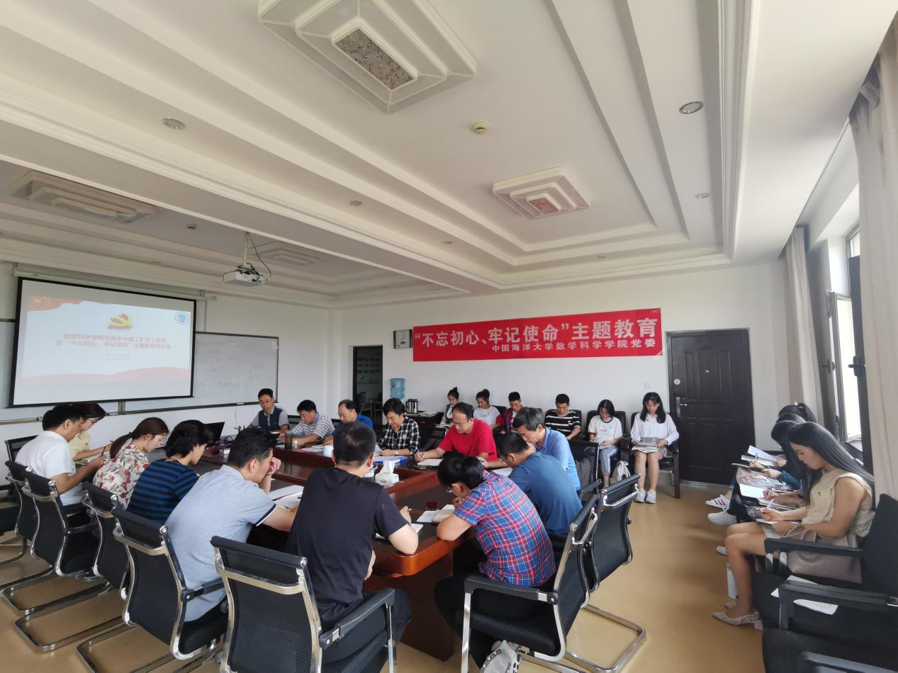 会上,学院党委书记张丽向与会成员传达了中央、学校开展“不忘初心、牢记使命”主题教育的指导意见。她强调,全体党员要深刻认识开展“不忘初心、牢记使命”主题教育的重大意义,深入学习贯彻习近平新时代中国特色社会主义思想,坚持思想认识到位、检视问题到位、整改落实到位、组织领导到位。各党员更要结合自身工作和学习需要,深入贯彻落实学校在此次主题教育活动中提出的总要求,要谋海济国守初心、立德树人担使命、对标检视找差距、奋进有为抓落实,切实增强“四个意识”,坚定“四个自信”,坚决做到“两个维护”,推动中央和教育部党组决策部署不折不扣落实落地。