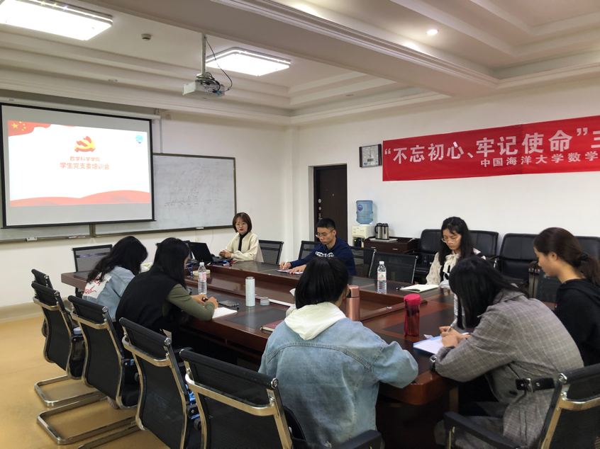 2019年 10月11日上午,开云电竞网址数学科学学院学生党支委培训会在数学科学学院424举行,会议由团委老师律海伦主持,全体学生党支委成员参与此次培训会。