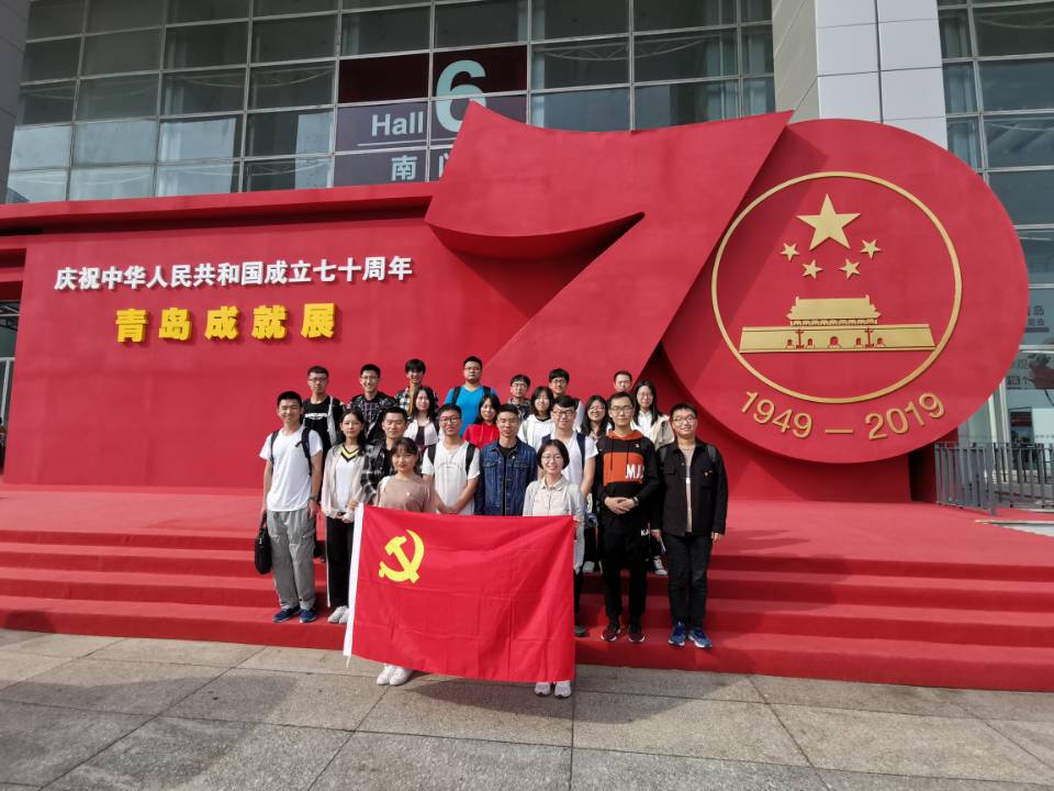 2019年10月13日下午,开云电竞网址数学科学学院本科生党支部开展了“我和我的祖国”主题党日活动,组织支部内的全体学生党员前往会展中心观参观“庆祝中华人民共和国成立七十周年青岛成就展”。