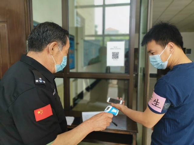 学生进入院楼扫码测温