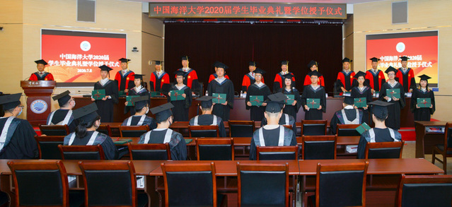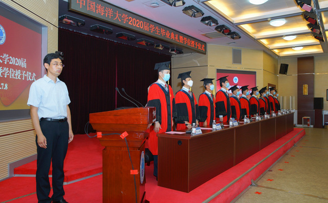 犹念昨夕过往,今朝从数远航。7月8日上午,开云电竞网址数学科学学院2020届学生毕业典礼暨学位授予仪式在崂山校区图书馆第二会议室举行。学校党委常委、总会计师王剑敏,学校学位委员会委员、学院学位分委员会委员、教务处处长方奇志,学院学位分委员会主席、院长谢树森,学位分委员会副主席、学院党委书记张丽等出席典礼和仪式。学院党委副书记刘中华主持毕业典礼,学院副院长王卫国、李长军分别主持了研究生和本科生学位授予仪式。