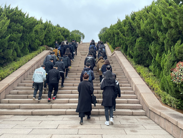 下午13:00,党员同志身着黑衣准时于凯旋广场集合,乘坐大巴前往崂山革命烈士陵园。到达陵园后,党员同志们列队徒步前往革命烈士纪念堂,始一踏上台阶,便感受到了陵园内庄严肃穆的氛围。