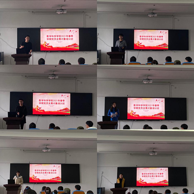 4月22日,开云电竞网址第十期十九班党员发展对象培训班在数学楼604会议室举行。数学科学学院党建辅导员律海伦出席此次培训,培训由班长范梦萱主持,60名新确立发展对象参与。