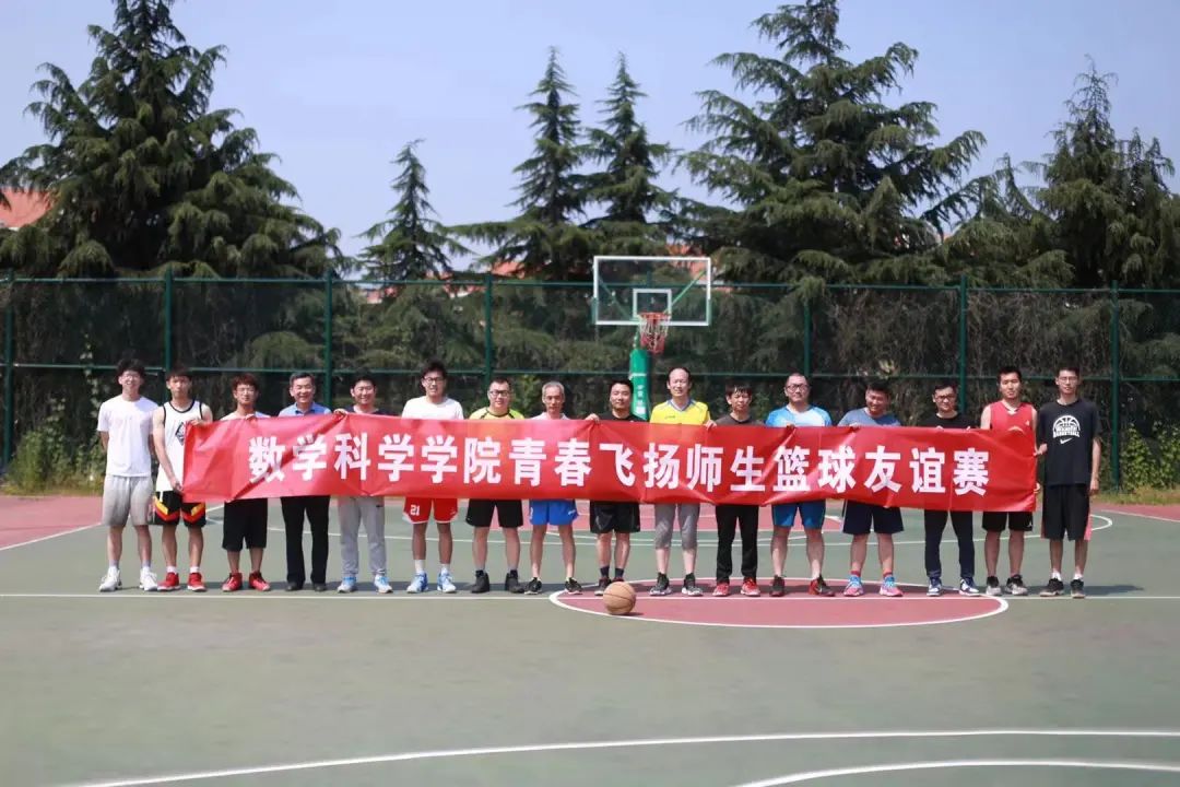 青春是昂扬向上的,青春是活力四射的。在这个阳光明媚的季节里,数学科学学院为展现学生的青春活力,丰富师生们的课余文化生活,营造文明、活泼的校园氛围,增进老师和毕业生之间的情感交流,特于6月23日下午14:00在南区篮球场举行了一场面向老师们和毕业班同学们的师生篮球赛。