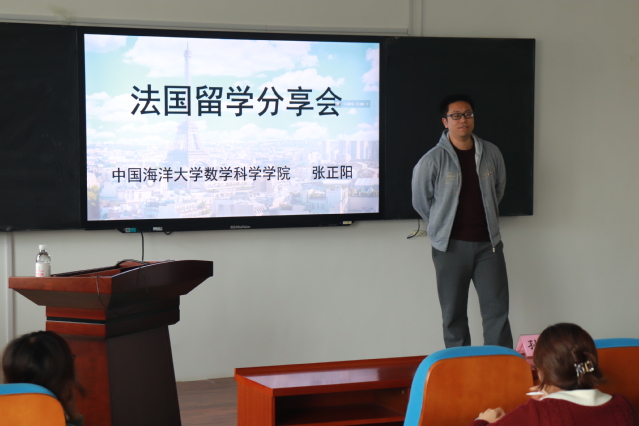 活动第二环节,学院孙祥老师和张正阳老师给同学们分享了出国留学的经验,其中,孙祥老师在海大数学院读过本科,拉近了和同学们之间的距离感。