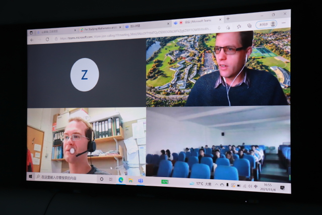 活动第一环节,付凯老师为同学们带来了萨塞克斯大学的介绍。接下来,萨塞克斯大学 Nicos Georgiou 教授在线上为同学们介绍了学校留学生的生活学习情况。Nicos Georgiou 教授同时讲解了高速公路交通模型、排队论和僵尸启示录之间惊人的联系,让同学们感受一下教学方法,使同学们对萨塞克斯大学有了初步的了解。