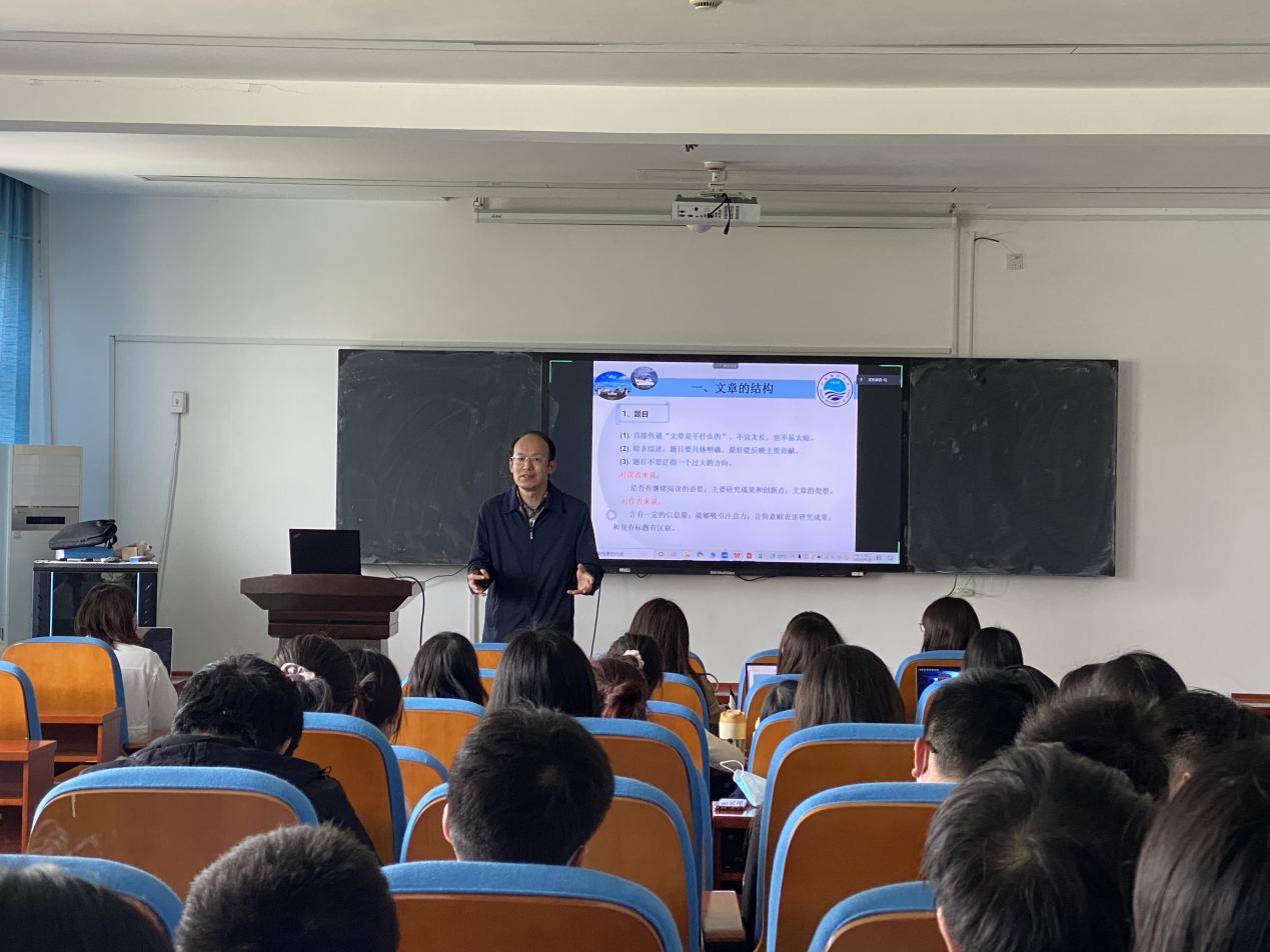 讲座开始,王卫国院长围绕硕士毕业论文工作的重要性、论文的结构、评审规则、论文框架结构、研究与写作方法等作了深入浅出的讲解。他结合自身多年指导学生论文的经验以及学生写作中易存在的问题,对毕业论文工作各个环节的质量要求、学术不端、论文质量标准等方面做了详尽的阐述,让学生们受益匪浅。