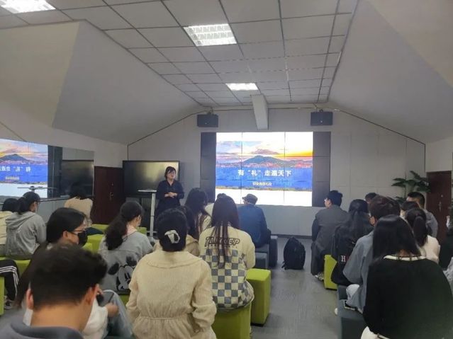 在具体讲解职场礼仪之前,王圣丹老师用孔子《礼》中的一句话来阐释职场礼仪的重要性与学习职场礼仪的必要性:“不学礼,无以立。”,随后王圣丹老师用“六书”的问题与现场同学进行互动,活跃了现场的气氛,职场礼仪讲解正式开始,分为四个部分进行。