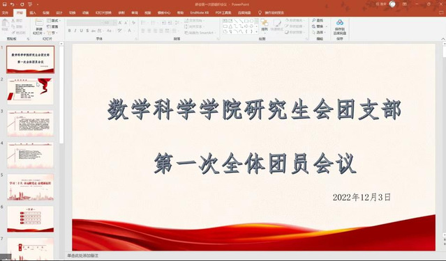 12月3日星期六晚10:45,由数学科学学院研究生会开展的第一次团员会议线上召开。研究生会全体成员参加了此次会议。