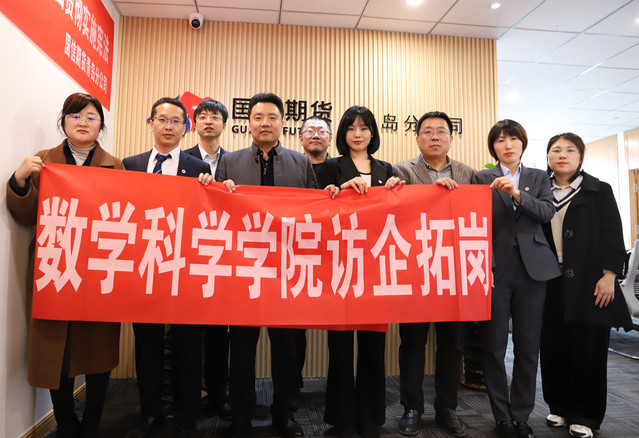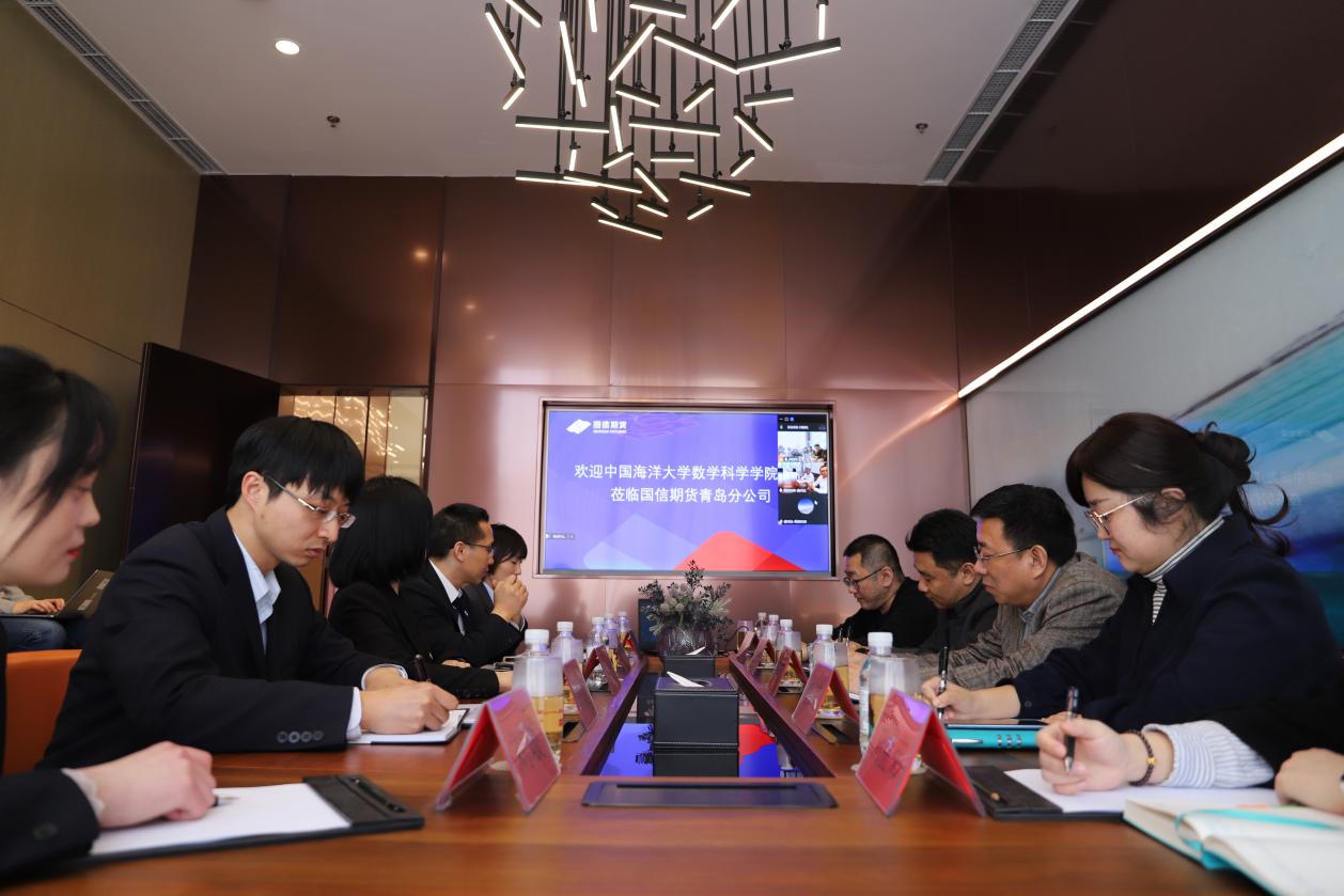 为深入学习贯彻党的二十大精神,落实党中央、国务院“稳就业”“保就业”决策部署,全力促进学院毕业生更加充分更高质量就业,助力形成产学研创新体系。3月17日,数学科学学院副院长王建、党委副书记于泳一行赴国信期货青岛分公司开展访企拓岗促就业行动,参与活动的有国信期货山东分公司总经理闫丽君、青岛分公司总经理刘晓霞、国信证券银川东路营业部总经理王清阳、国信期货青岛分公司副总经理汤超等,并邀请到国信期货研究咨询部总监郑智伟、研究咨询部主管顾冯达线上参与。