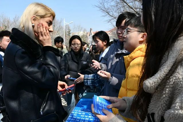 本次活动也吸引到了一些校内的外国友人的关注,工作人员利用流畅的英语进行交流,为外国友人讲解游戏规则,在顺利地完成游戏之后,外国友人给出好评,露出笑容,这是对于工作人员能力的肯定,也是对于活动的称赞,而能让外国友人参与进这次数学活动,也侧面达成了国际数学节的国际性。