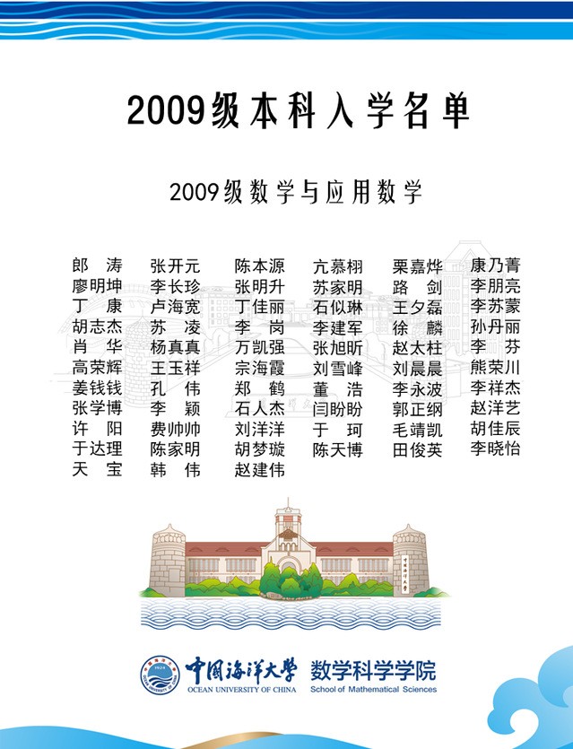 2009级本科入学名单
