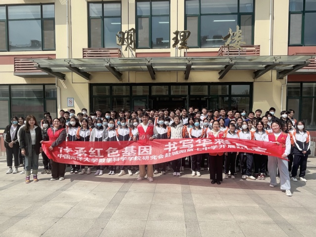 为深入学习贯彻习近平新时代中国特色社会主义思想,激发全社会追求真理、勇于担当的民族精神。4月25日,数学科学学院大学生中国特色社会主义理论学习研究会赴青岛市城阳第七中学开展以“传承红色基因,书写华彩青春”为主题的宣讲活动。本次活动共分为红色书推、红色故事分享、知识问答和文化体验四个环节。