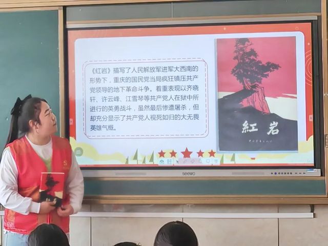 活动伊始,主讲人莫文君、孙梦莹生动形象地介绍了中国共产党革命斗争的背景并向同学们赠送了三本红色经典书籍《红日》《红岩》和《红星照耀中国》。