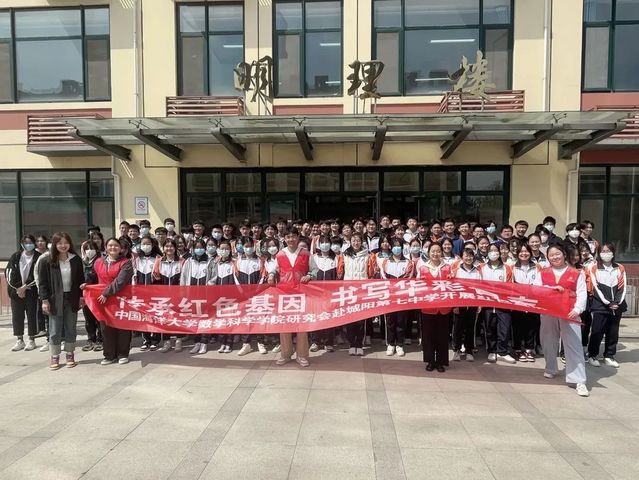 为深入学习贯彻习近平新时代中国特色社会主义思想,激发全社会追求真理、勇于担当的民族精神。4月25日,数学科学学院大学生中国特色社会主义理论学习研究会赴青岛市城阳第七中学开展以“传承红色基因,书写华彩青春”为主题的宣讲活动。本次活动共分为红色书推、红色故事分享、知识问答和文化体验四个环节。