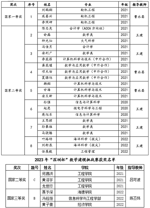 附:2023年全国大学生数学建模竞赛国家奖获奖名单