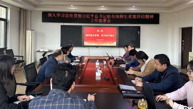 11月04日下午,数学科学学院党委在数学楼424会议室召开深入学习宣传贯彻习近平总书记给全体师生重要回信精神(以下简称“回信”)工作部署会,集体学习回信精神,并结合学院实际情况部署学院整体工作。会议由学院党委书记张丽主持,学院党委委员、教工党支部书记参加会议。
