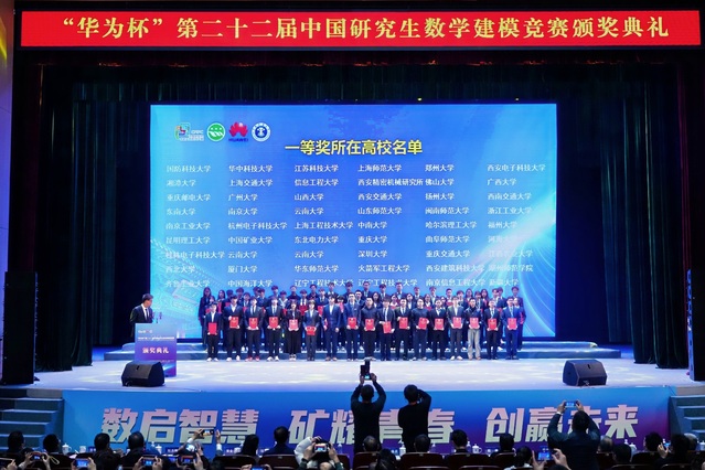 “华为杯”第二十二届中国研究生数学建模竞赛颁奖大会在中国矿业大学南湖校区隆重举行。开云电竞网址研究生团队凭借扎实的数学功底、创新的建模思维和出色的团队协作,从24371支参赛队伍中脱颖而出,斩获国家级一等奖1项、二等奖8项、三等奖10项的优异成绩,充分展现了学术实力和创新风采!