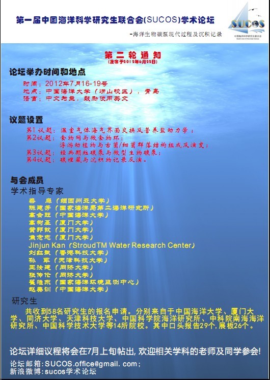 第一届中国海洋科学研究生联合会(SUCOS)学术论坛第二轮通知
