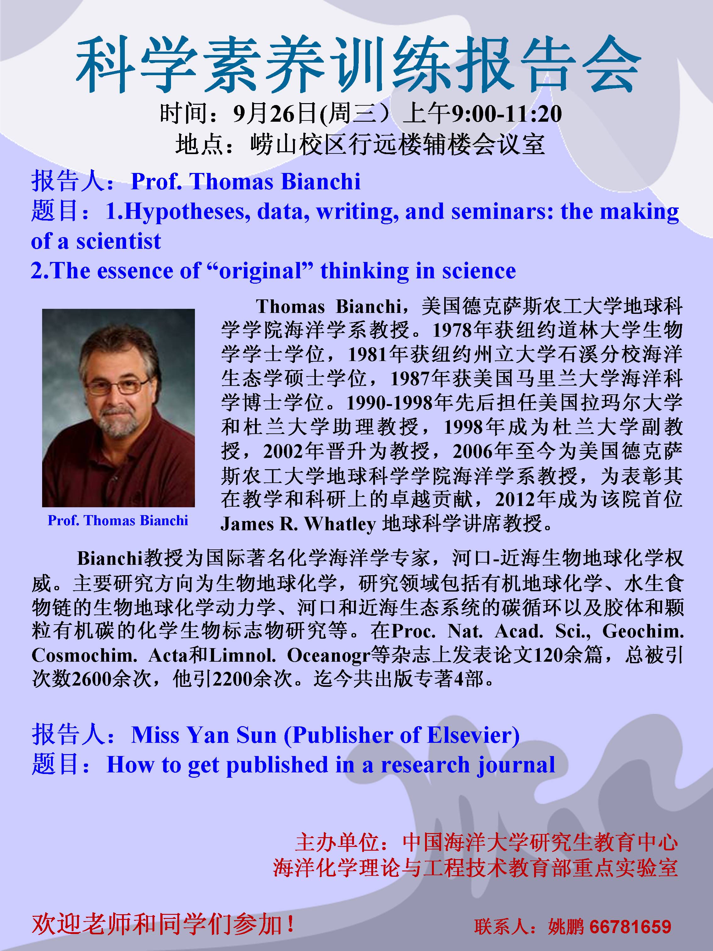9月26日TAMU Bianchi教授“科学素养训练”报告会