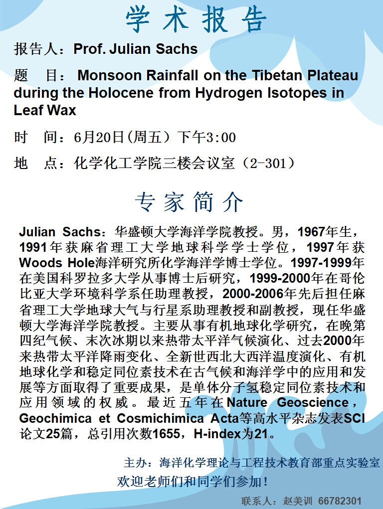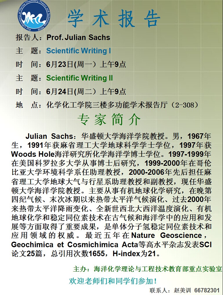 华盛顿大学Julian Sachs教授讲座