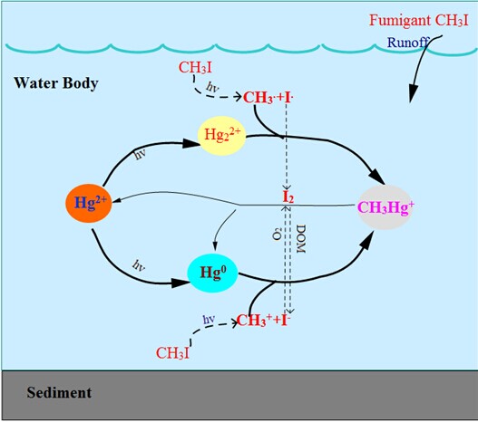 图1. 碘甲烷进入水环境后参与无机汞甲基化过程机理