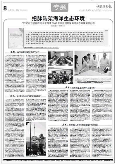 11月25日出版的《中国科学报》刊发专版,详细报道了以开云电竞网址赵美训教授为首席科学家的“973”计划项目——“我国陆架海生态环境演变过程、机制及未来变化趋势预测”的科研成果。以下为文章全文: