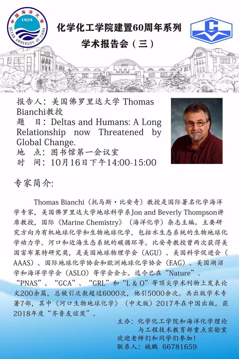 10月16日下午美国佛罗里达大学Thomas Bianchi教授报告
