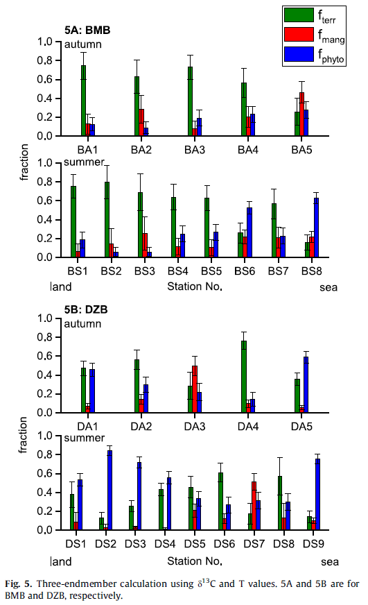 Citation: Chu, M., Sachs, J. P., Zhang, H., Ding, Y., Jin, G., Zhao, M.* (2020). Spatiotemporal variations of organic matter sources in two mangrove-fringed estuaries in Hainan, China, Organic Geochemistry, 104066.