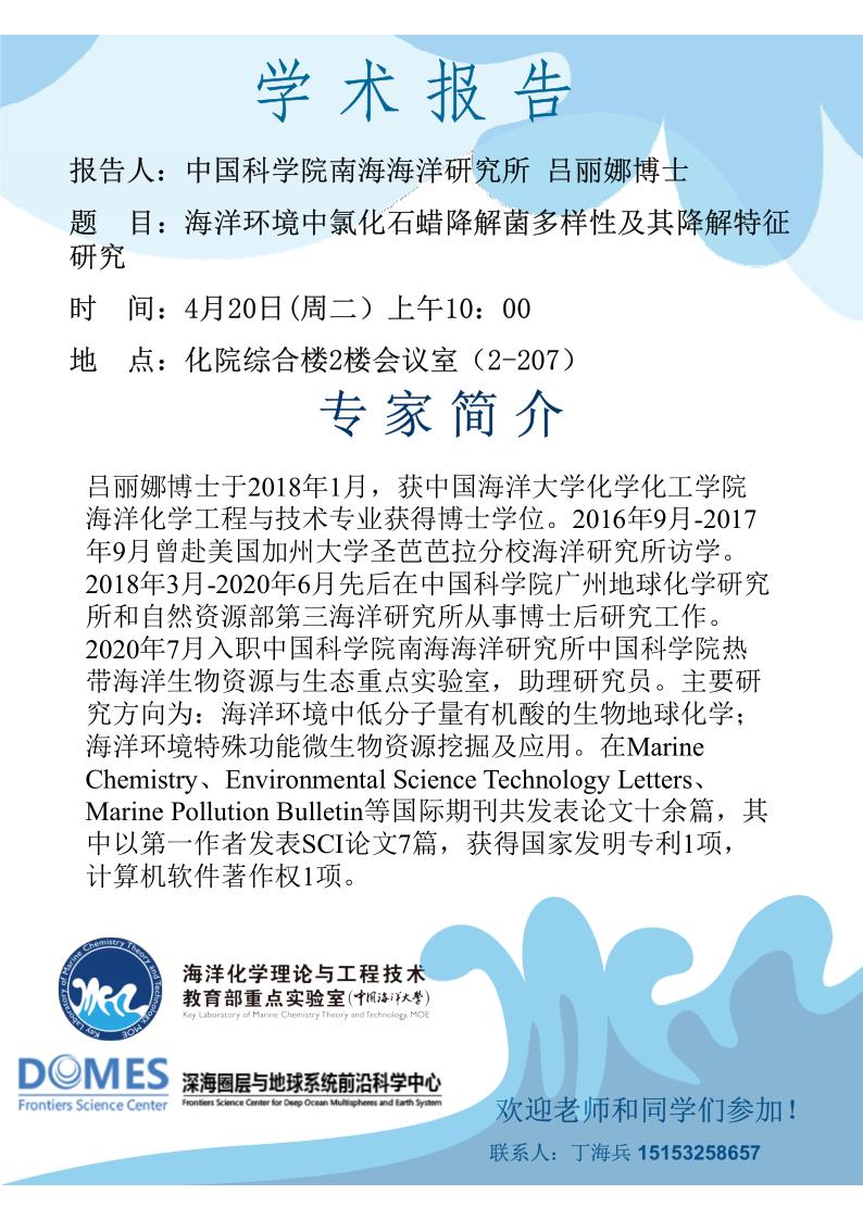 4月20日中科院南海所吕丽娜博士报告